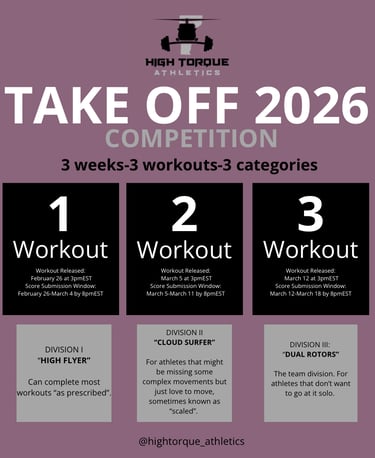 A: Yes! Top 3 in all divisions will move on to the Take Off Games Day that will be determined based on athlete availability, end of April, - there, the division winners will be crowned!